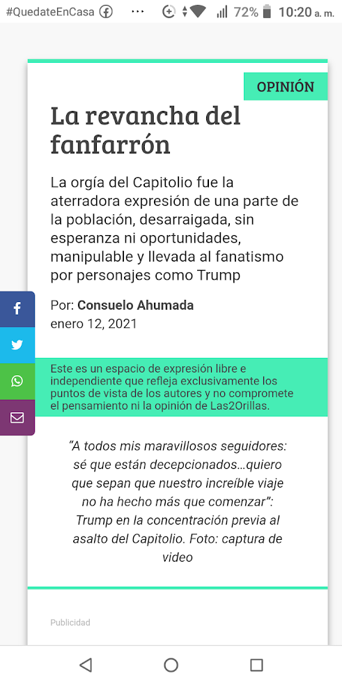 "La orgía del Capitolio fue la aterradora expresión de una parte de la población, desarraigada, sin esperanza ni oportunidades, manipulable y llevada al fanatismo por personajes como Trump